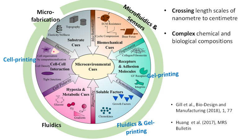 We are developing low waste, direct-write fibre technology to pattern bioactive, biocompatible fibrils, gels and sensing elements. Ultimately, the biomimetic construct will provide the building blocks for tissue regeneration. These soft electronic systems could also see a wide range of applications where electrical stimuli are required to deliver to the cellular system, a good example being the neural electrode. To realise these applications, within our lab we have demonstrated a number of novel 3D printing techniques.