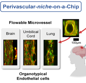 This research area focuses on developing models to recapitulate the microvasculature, and other key microenvironment factors for living cells in a fluidic device. Specifically, we apply our materials approach to study the motility of cancer cells when they interact with a vessel formed by the endothelial cells, to mimic the conditions of cancer invasion. We have also created a glomerulus-on-a-chip, for industry-relevant drug testing of kidney disease.